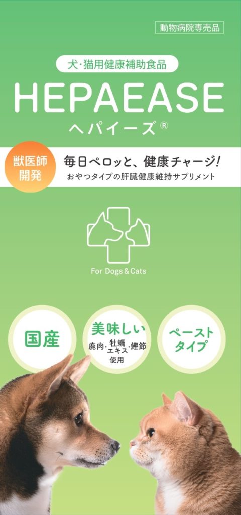 愛犬や愛猫の肝数値を気にして来院される飼い主様は多くいらっしゃり、日常的な肝臓のケアの重要性を常に感じています。ヘパイーズは肝臓の機能を支える成分を含んでいるとともに、毎日続けやすい味と形状なのが大きな魅力です。鹿肉ベースなので低脂肪でカロリーが低いため、太り気味の子にも安心しておすすめできます。